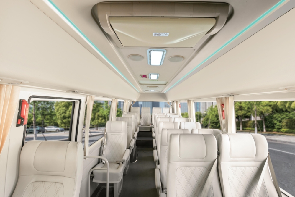 為迎合精品旅游客運(yùn)、團(tuán)體通勤與公商務(wù)接待等細(xì)分市場日益升級 的運(yùn)營需求,金龍深度解析細(xì)分市場應(yīng)用案例數(shù)據(jù),研發(fā)出了集全 新的外觀造型、輕奢的內(nèi)飾風(fēng)格、全沖壓標(biāo)準(zhǔn)的制造工藝、廣受市 場青睞的黃金動(dòng)力鏈以及全面優(yōu)化的底盤性能為一體的多功能商用車——浩銳。