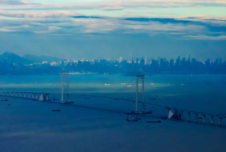 這條連接深圳與中山的跨海通道,全長(zhǎng)約24公里,雙向八車道,設(shè)計(jì)時(shí)速100公里,是當(dāng)前世界上綜合建設(shè)難度最高的跨海集群工程。